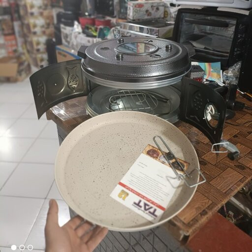 فر برقی تات یک مدل منحصر بفرد با طراحی شیک جهت پخت و پز کیک - پیتزا - مرغ و غیره میباشد . این مدل فر برقی که از آن به عنوان فر برقی اکونومی یاد میشود با کارایی بالا و البته قیمتی مناسب تر طراحی و تولید شده است. بدنه این محصول فلزی و داخل آن از دو المنت بالا و پایین استفاده شده است . همچنین از ویژگی های منحصر بفرد آن دارا بودن سینی ته سرامیکی میباشد که باعث میشود غذا به ته سینی نچسبد . از لحاظ رنگ بدنه هم دقت زیاده در تولید این محصول شده و از رنگ الکترو استاتیک چکشی در رنگ امیزی آن استفاده شده است .